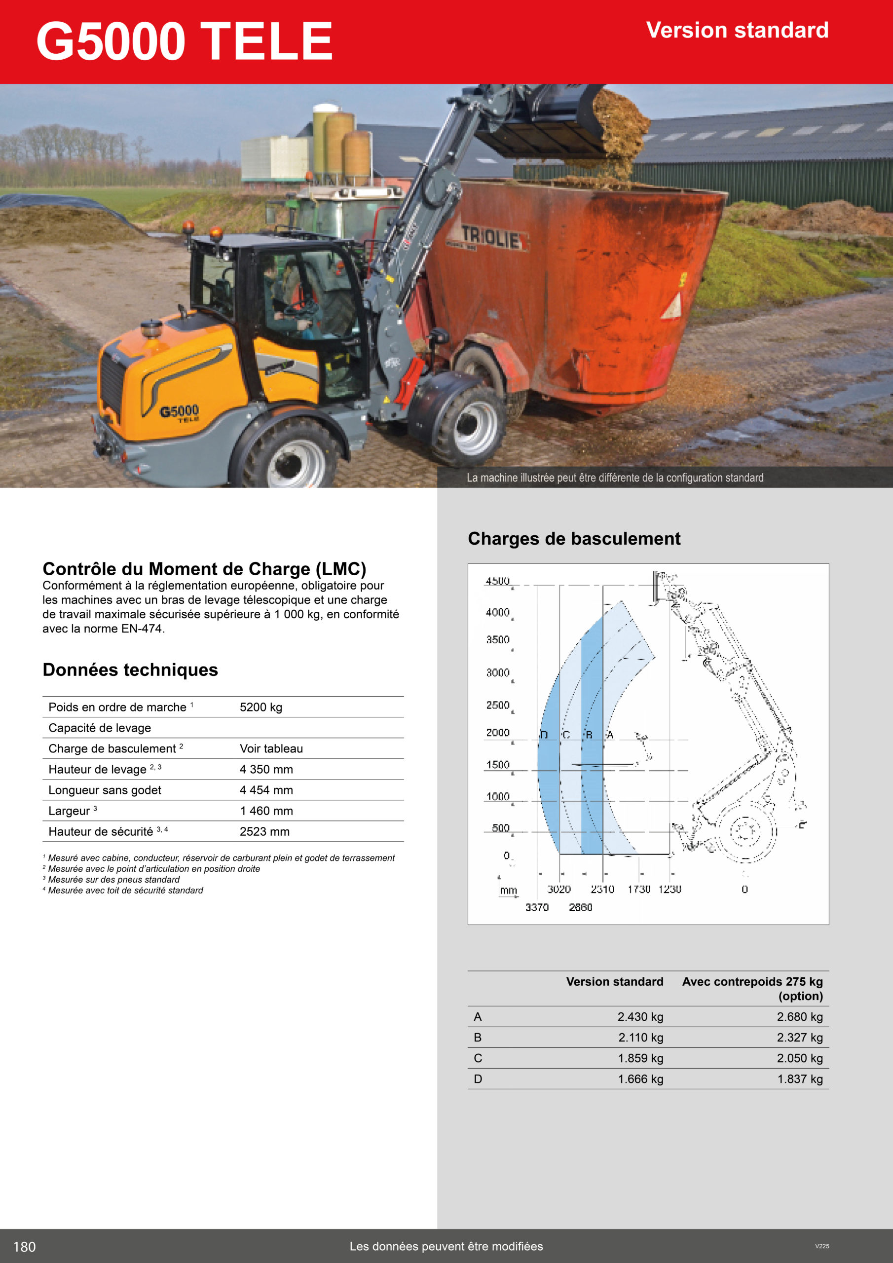 – Feux de travail (halogènes) à l’avant, sur le bras de levage
