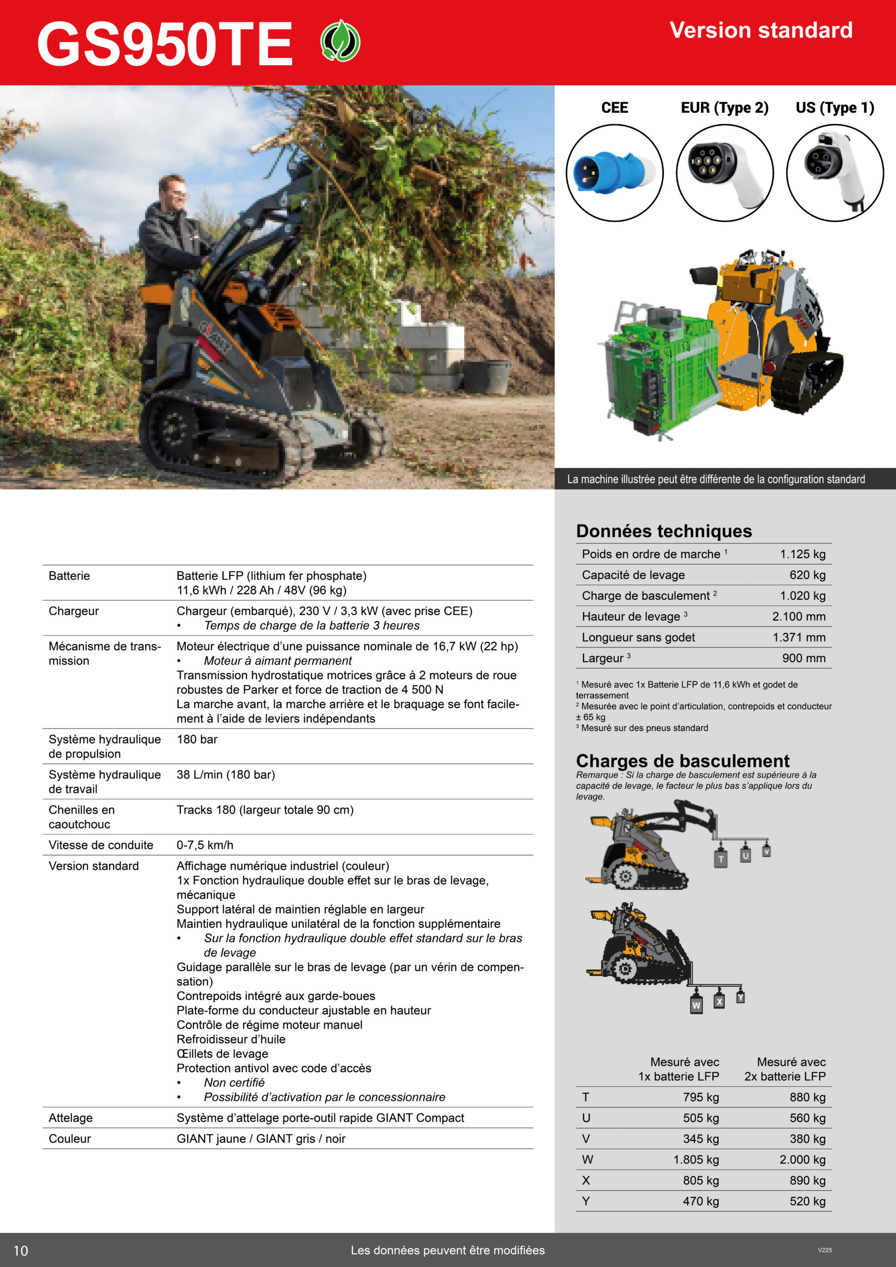 Avec un poids de 1 125 kg, la GS950 TE bénéficie d’une traction et d’une flottabilité accrues, ce qui permet de réduire le compactage du sol. Ce modèle est également doté d’un mode boost, lui permettant d’atteindre une vitesse maximale de 6 km/h.